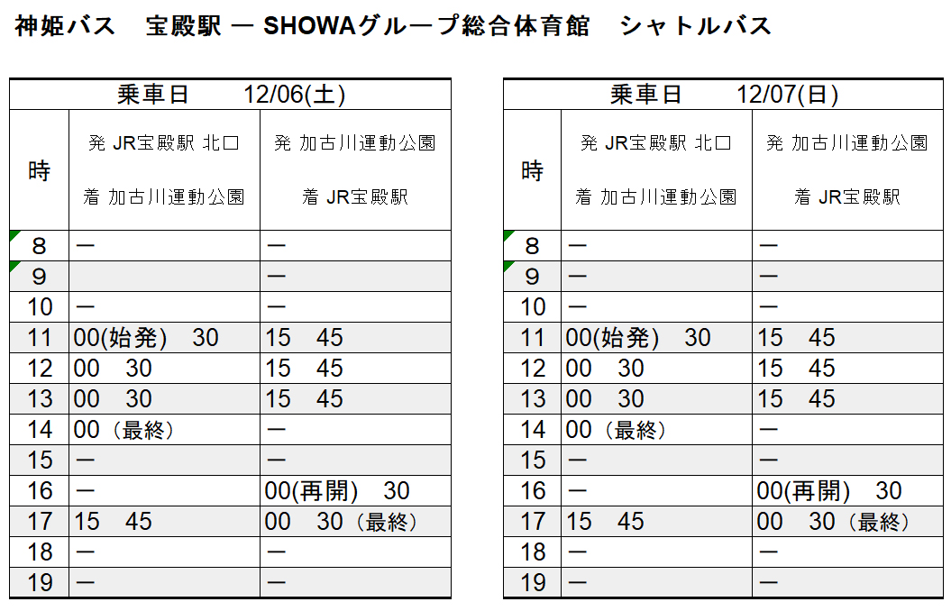 当日JR宝殿駅⇆体育館のシャトルバスを運行します。